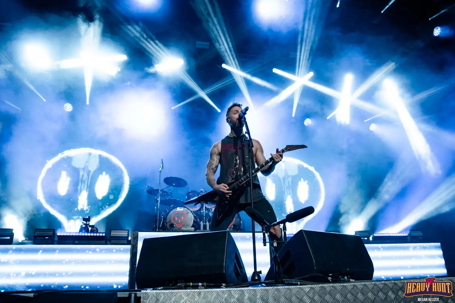 De Australische band Polaris opent met “Nightmare” en toont met de brede, digitale visuals dat er wat moois op komst is. De band voelt zich compleet thuis op een podium als deze en al snel wordt duidelijk dat de band goed op elkaar in is gespeeld. Bassist Jake Steinhauser ondersteunt de scream vocalen van Jamie Hails en samen wordt een muur van geluid opgezet. De heftige breakdowns vegen als sloopkogel dwars door de melodieuze basis van de muziek heen.